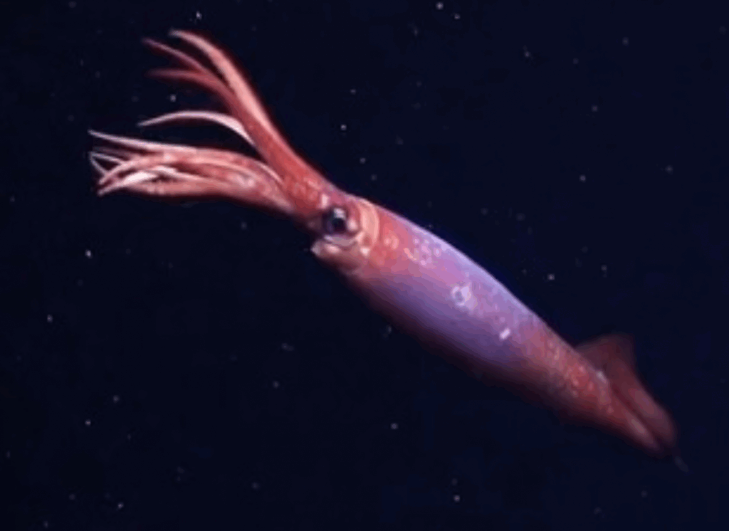 I’ve spoken before about the rare Colossal squid that inhabits Antarctic waters but there’s another squid that lives down there in the midnight zone, (3,300 to 13,100 feet) (1,000 to 4,000 m) in the deep ocean.